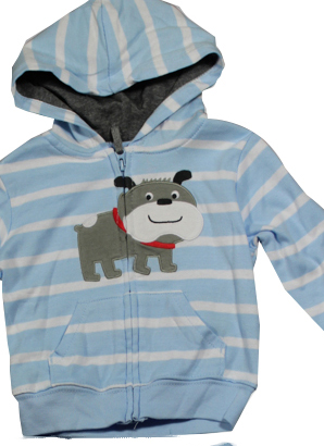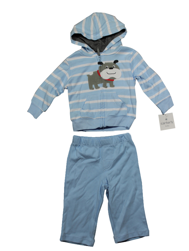 Γαλάζιο σετ φόρμας με γούνα στην κουκούλα της ζακέτας.Παιδικό σετ για αγοράκια απο την Carter's.