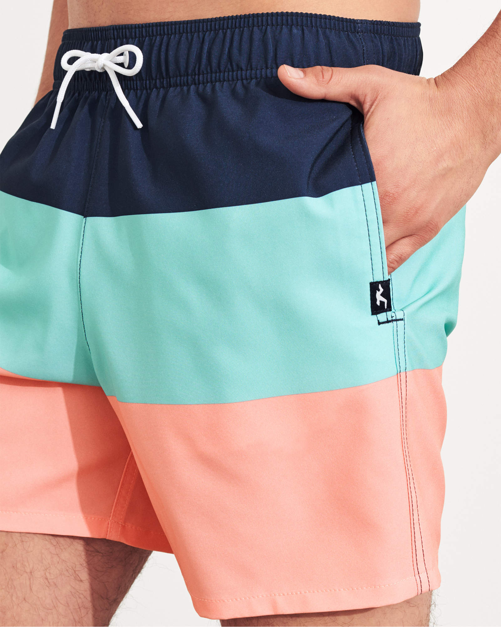 Shorter-length swim trunks that hit above the knee, designed in our new 4-way stretch, fast-dry fabric.