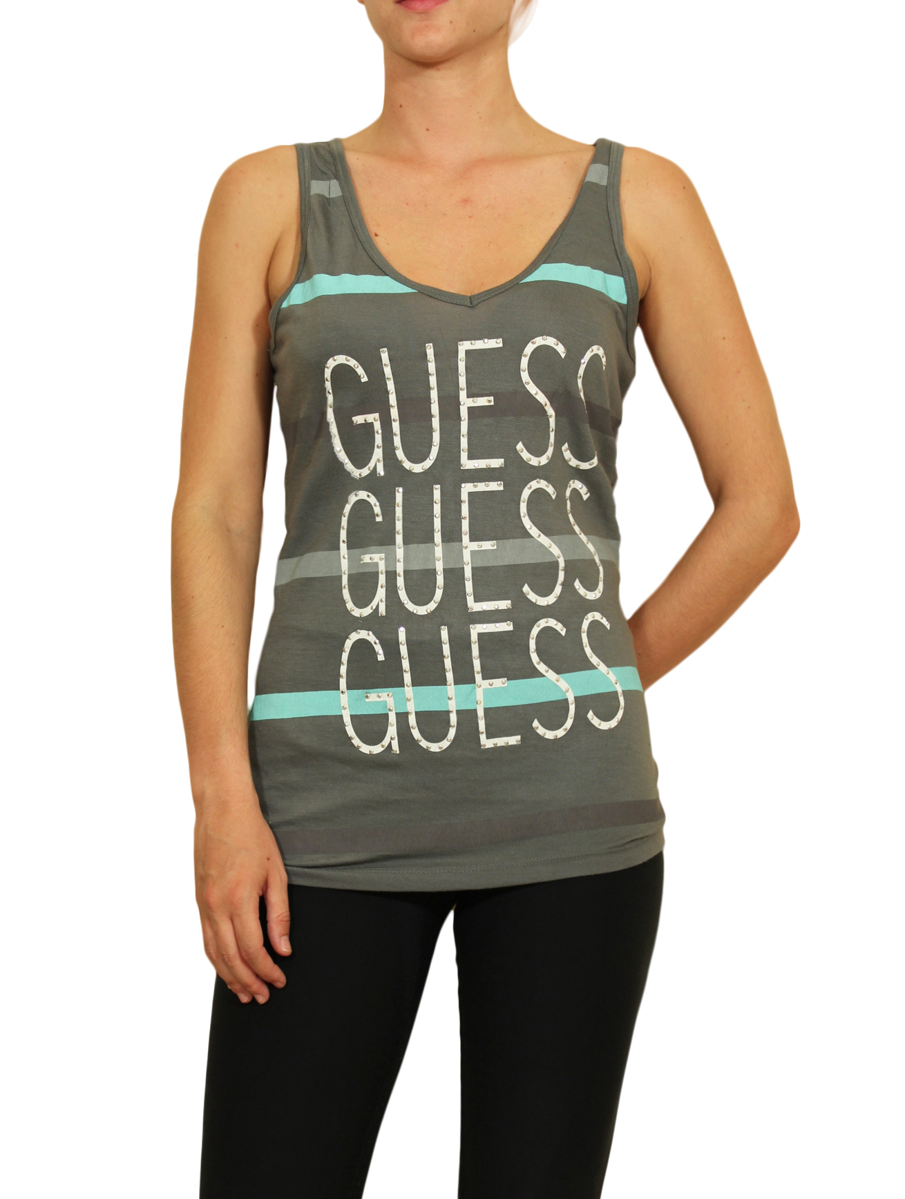 T-shirt Guess με ρίγες και λογότυπο σε στάμπα με strass.