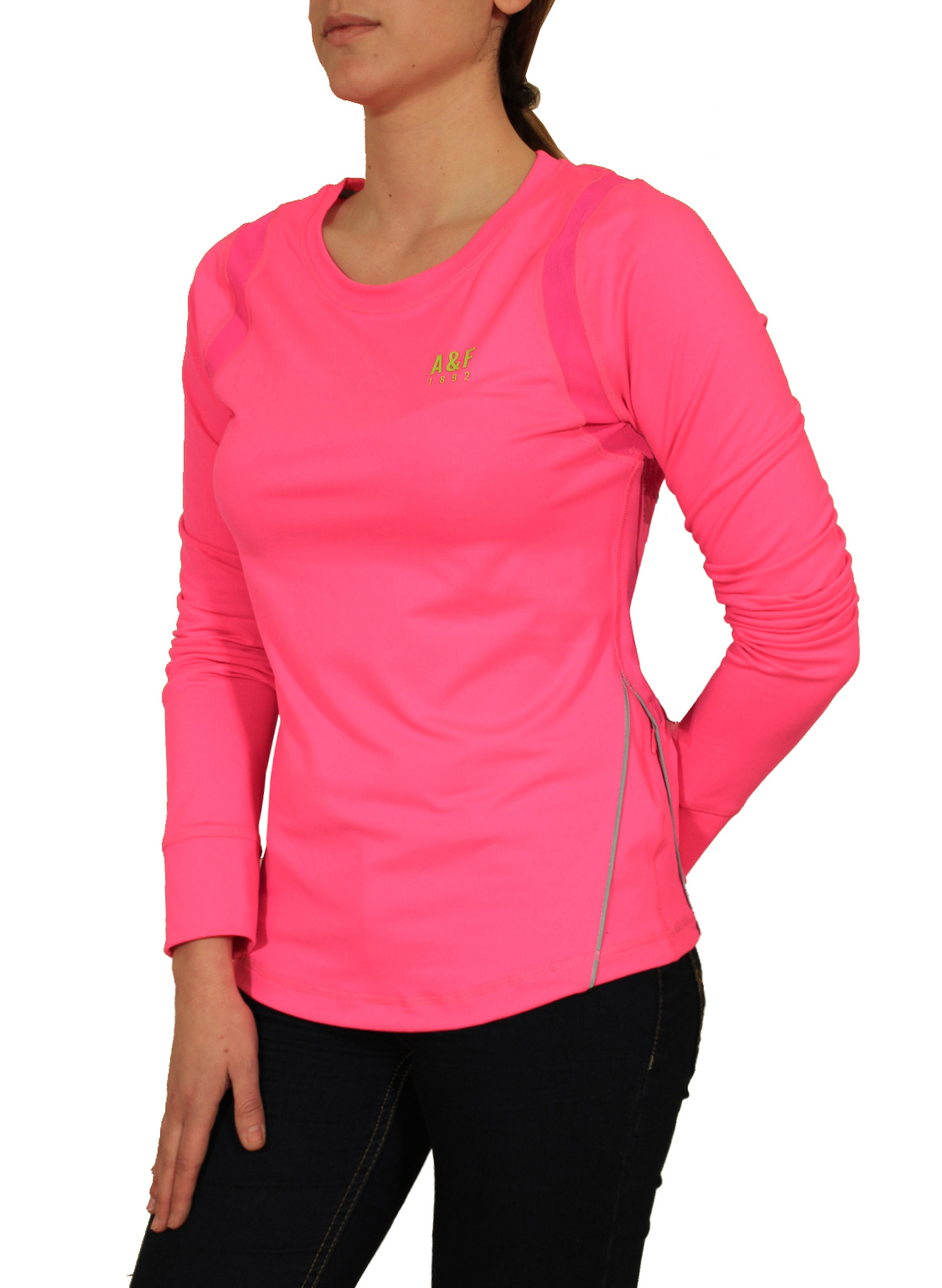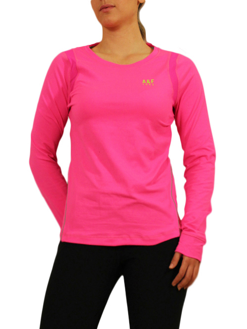Abercrombie & Fitch fitness ρόζ μπλούζα ιδανική για τρέξιμο και γυναστήριο, με πράσινες λεπτομέρειες και κεντητό logo.