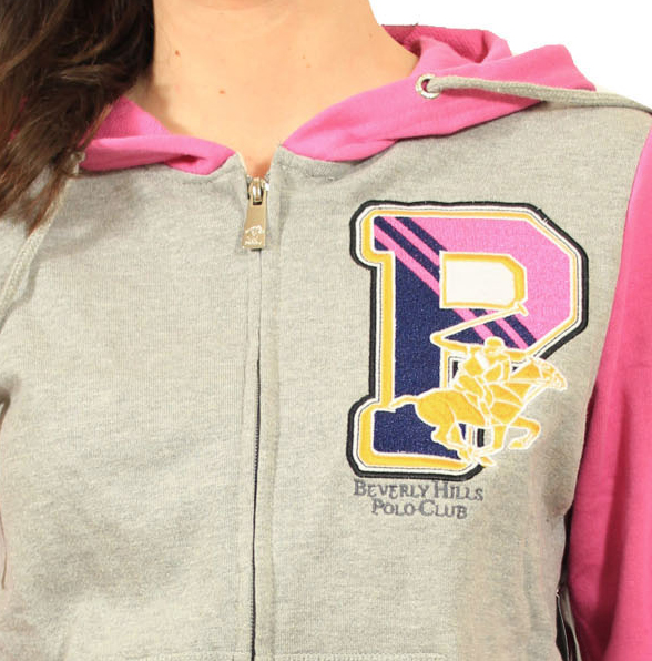 γκρί ζακέτα με ρόζ κουκούλα και μανίκια απο την Beverly Hills.
