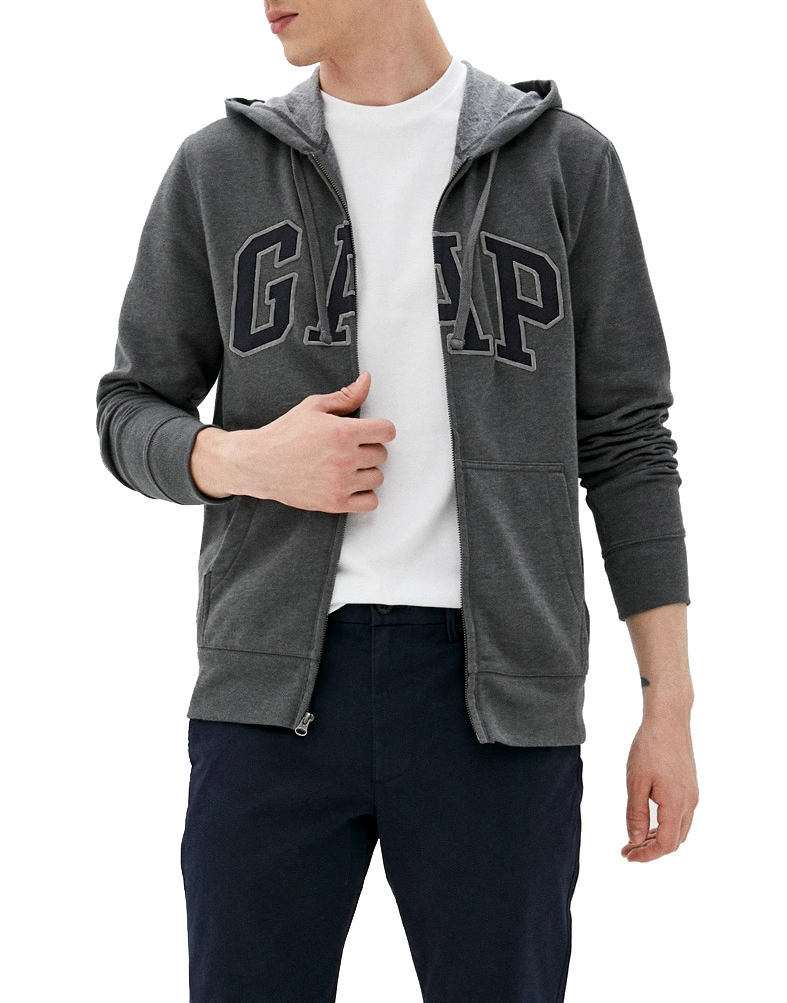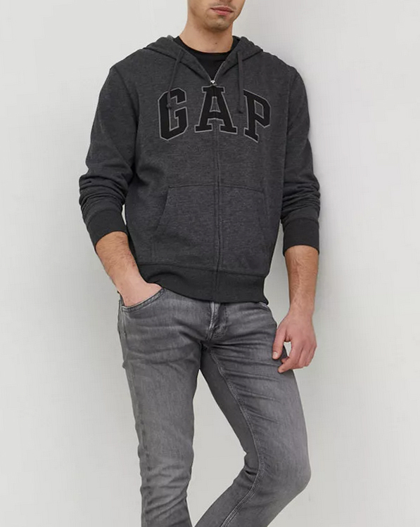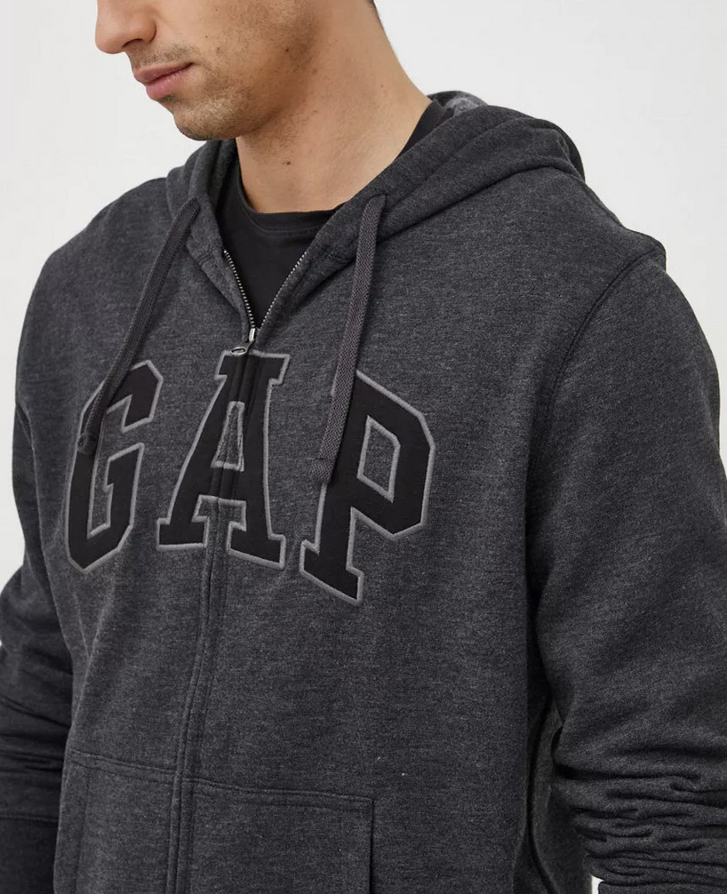 Gap ανδρική ζακέτα Soft, comfy fleece. Long sleeves with ribbed cuffs, hem. Hood with drawcord ties. Zip front. Embroidered arch logo applique at front.