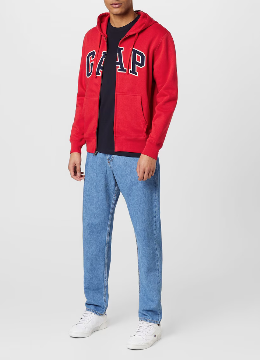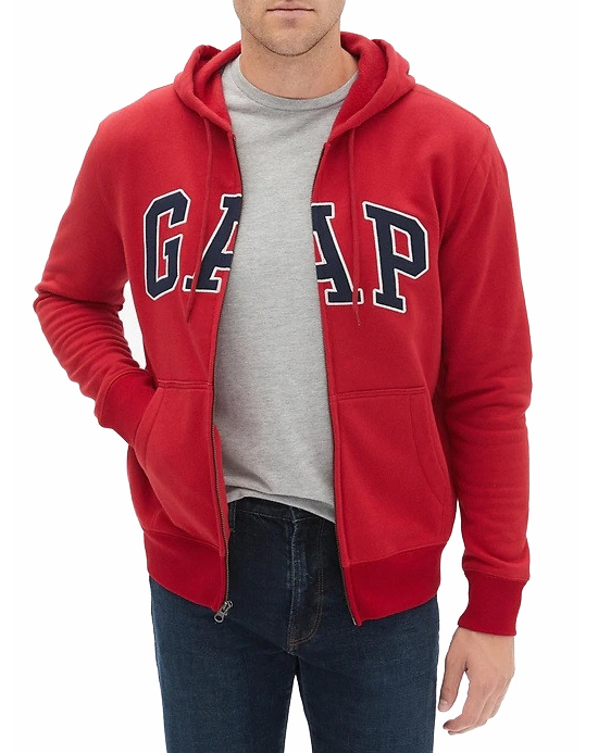 Gap ανδρική ζακέτα Soft, comfy fleece. Long sleeves with ribbed cuffs, hem. Hood with drawcord ties. Zip front. Embroidered arch logo applique at front.