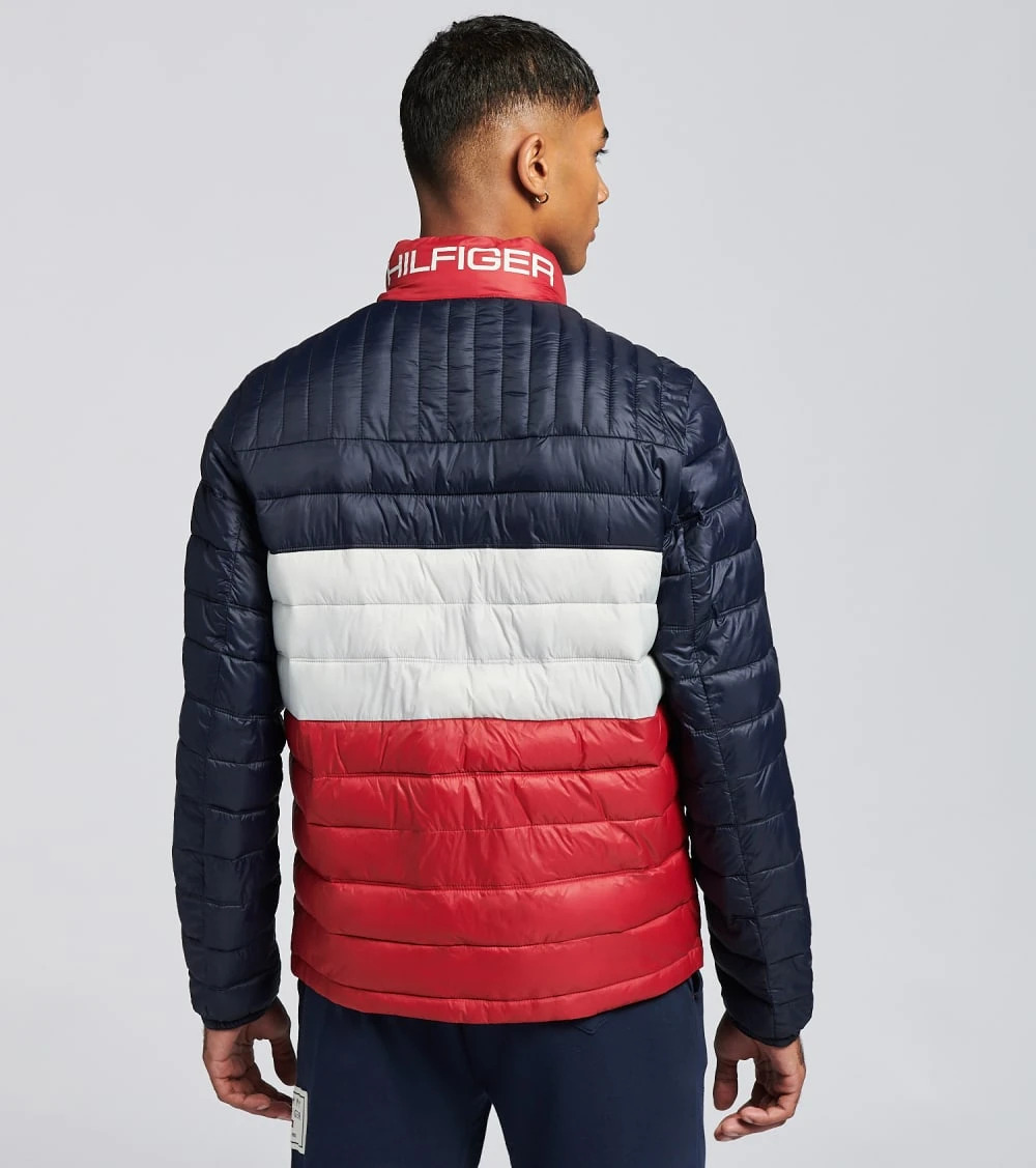 Μπουφάν Tommy Hilfiger ανδρικό Keep warm in style with the Nylon Logo Packable Jacket from Tommy Hilfiger.This lightweight jacket is comprised of a soft nylon material for all day comfort.