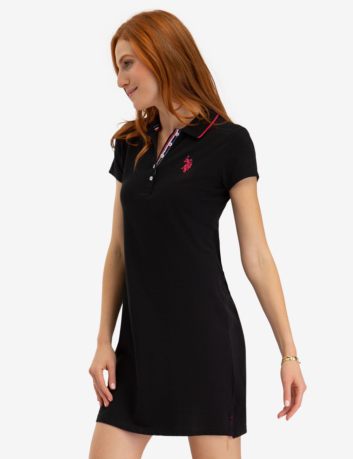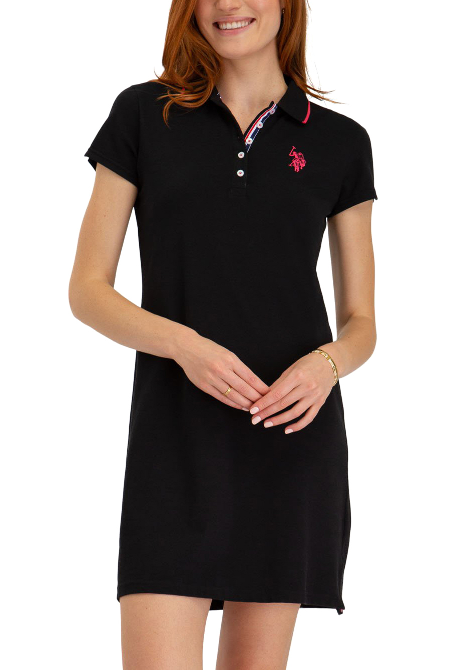 Φόρεμα Us Polo Ελαστικό Ύφασμα Short sleeves. Decorative button on side of each sleeve. Embroidered logo on upper left front. 95% Cotton, 5% Spandex. Machine Wash.