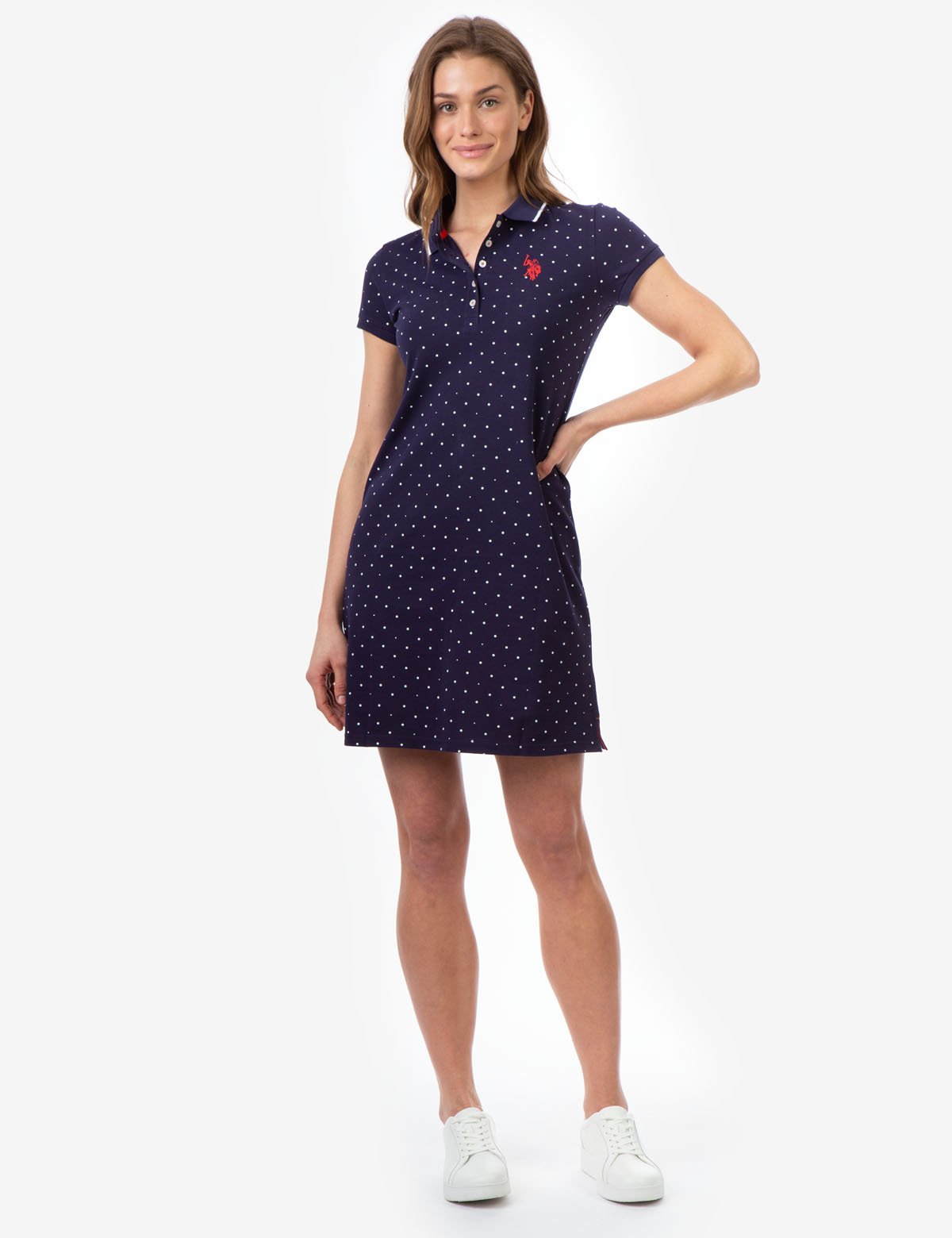 Φόρεμα Us Polo Ελαστικό Ύφασμα Short sleeves. Decorative button on side of each sleeve. Embroidered logo on upper left front. 95% Cotton, 5% Spandex. Machine Wash