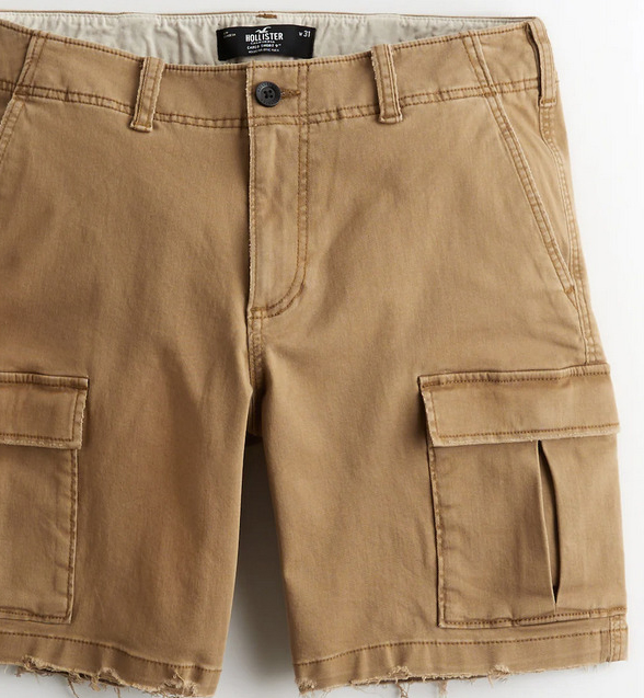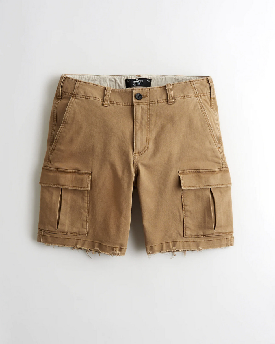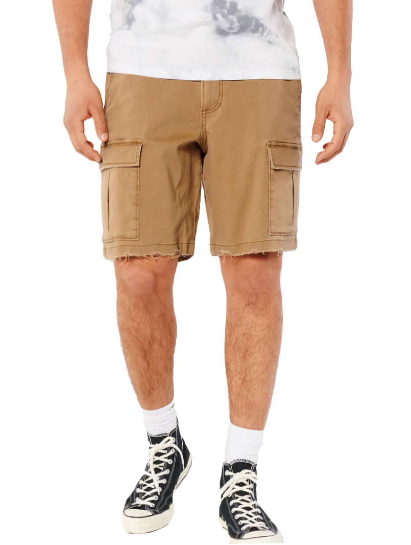 These classic twill cargo shorts feature side pockets, cargo pockets, button closure and distressing. 9” inseam. Imported.