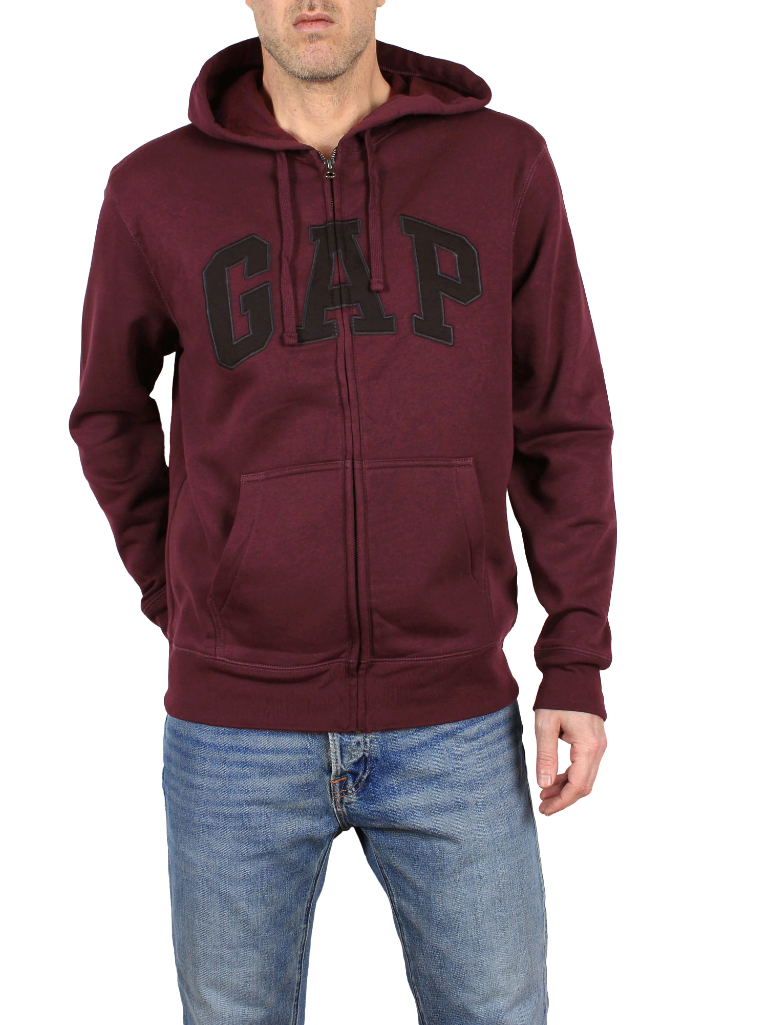 Gap ανδρική ζακέτα Soft, comfy fleece. Long sleeves with ribbed cuffs, hem. Hood with drawcord ties. Zip front. Embroidered arch logo applique at front.
