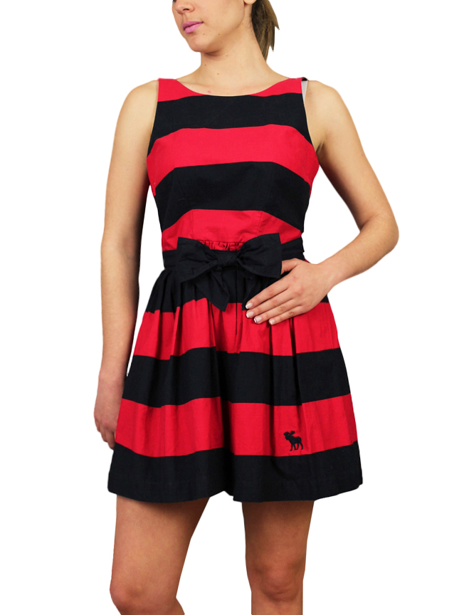 Φόρεμα με ρίγες σε κόκκινο και μαύρο χρώμα με κεντητό logo απο την Abercombie & Fitch.
