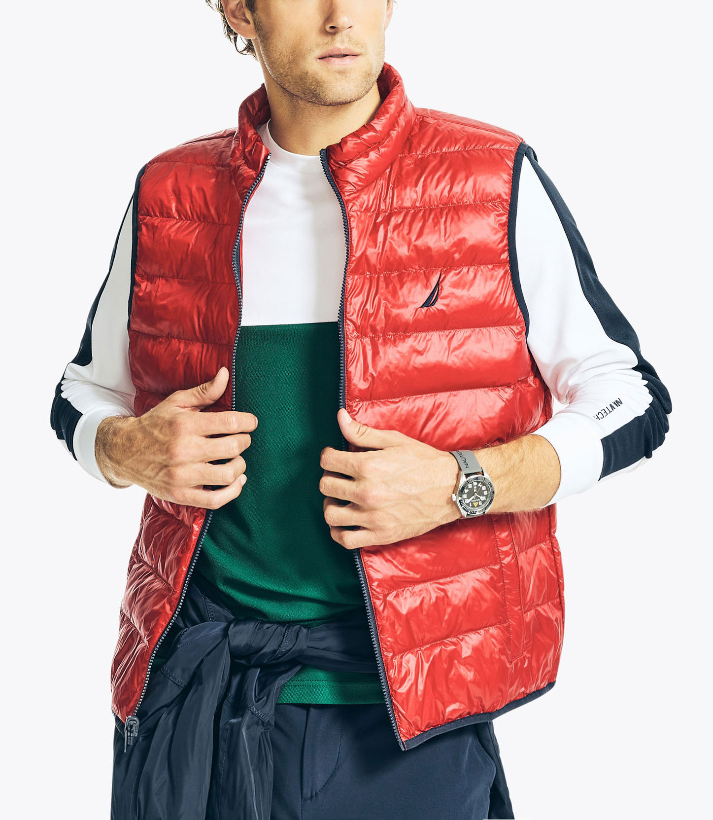 Made from Sustainably Crafted water-resistant fabric, this 4-in-1 System jacket is designed with a removable hood and vest so you can wear it however you need to. From our Navtech collection, it is the perfect jacket for life’s daily adventures.