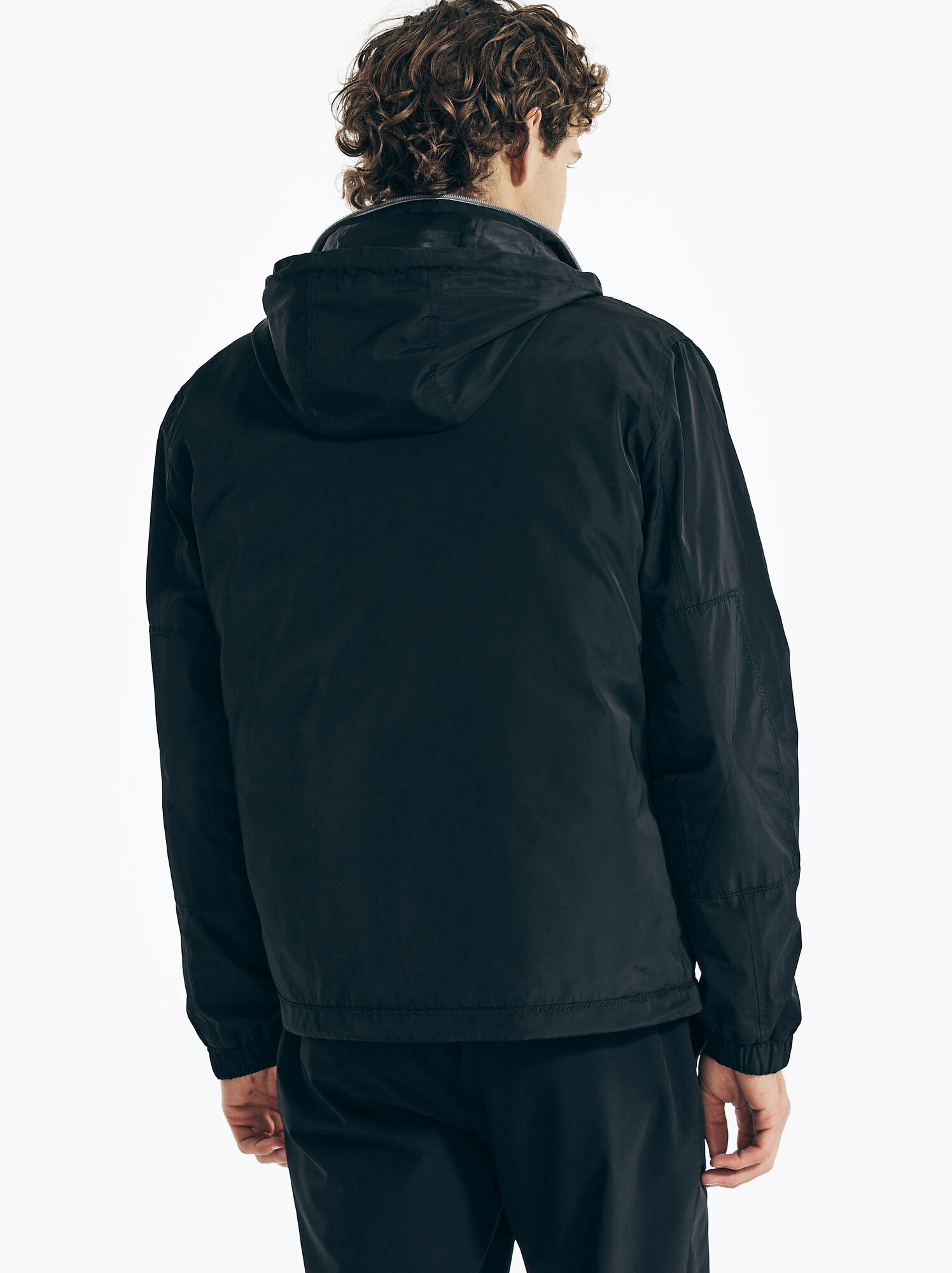Full-zip closure. Removable drawcord hood. J-class logo at chest.