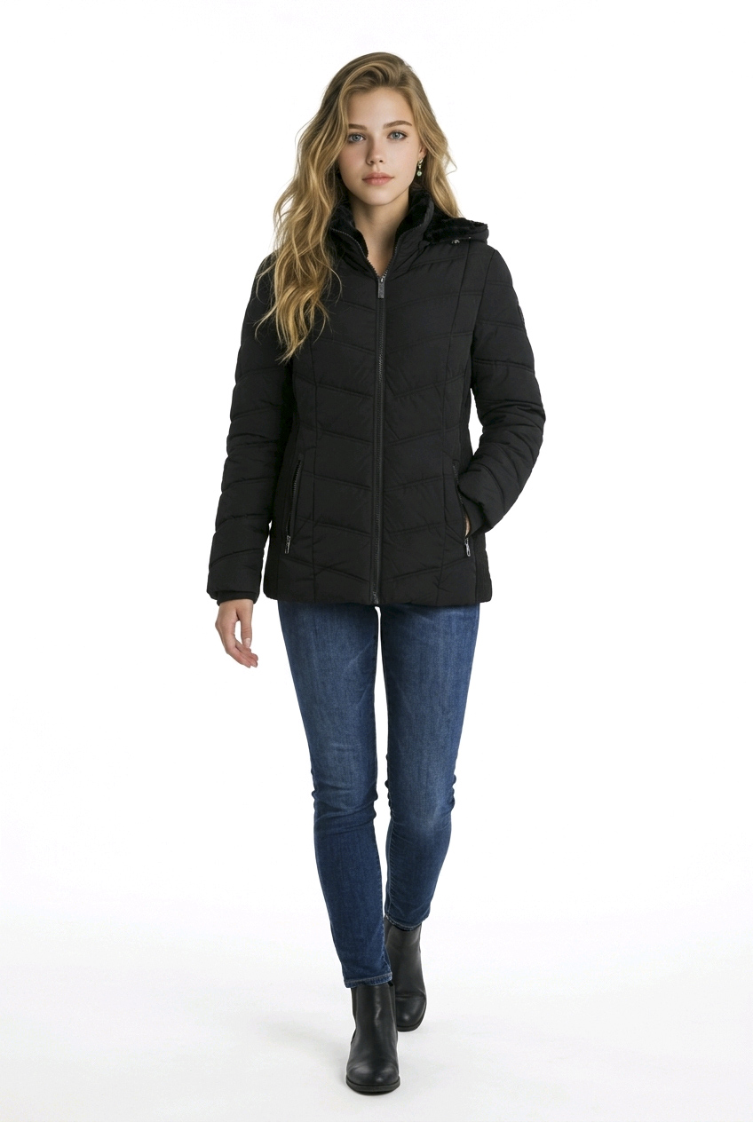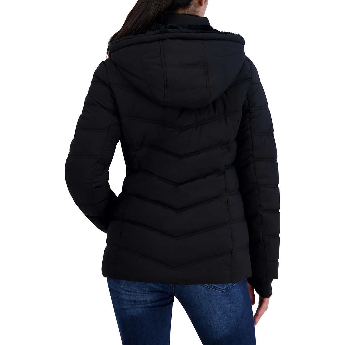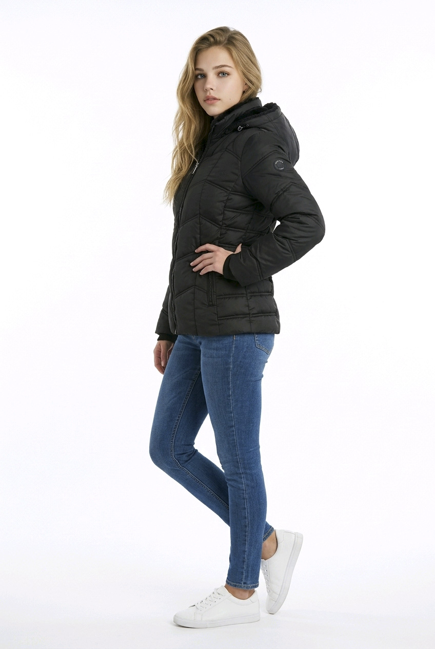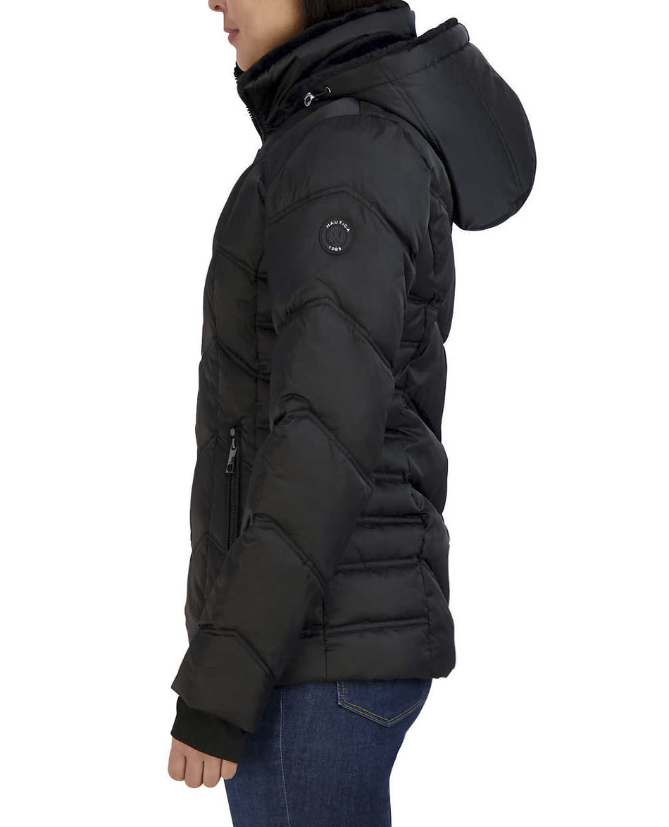 Nautica μπουφάν γυναικείο σε μαύρο χρώμα με αποσπώμενη κουκούλα και γούνα.
