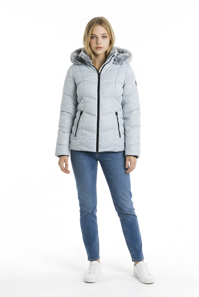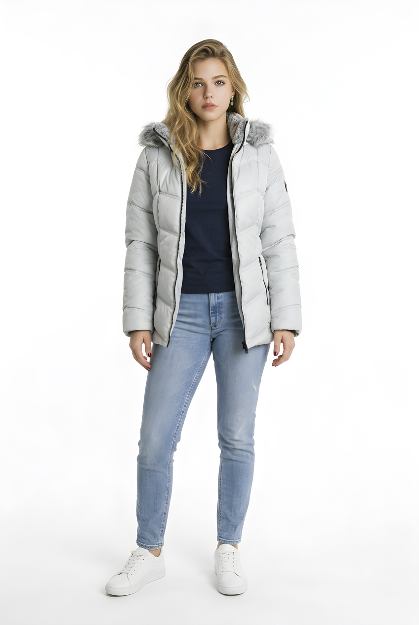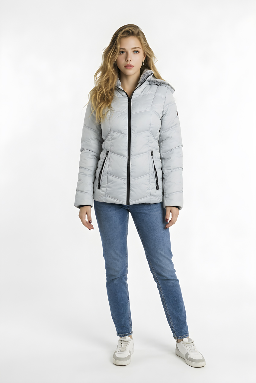 Nautica μπουφάν γυναικείο σε μαύρο χρώμα με αποσπώμενη κουκούλα και γούνα.
