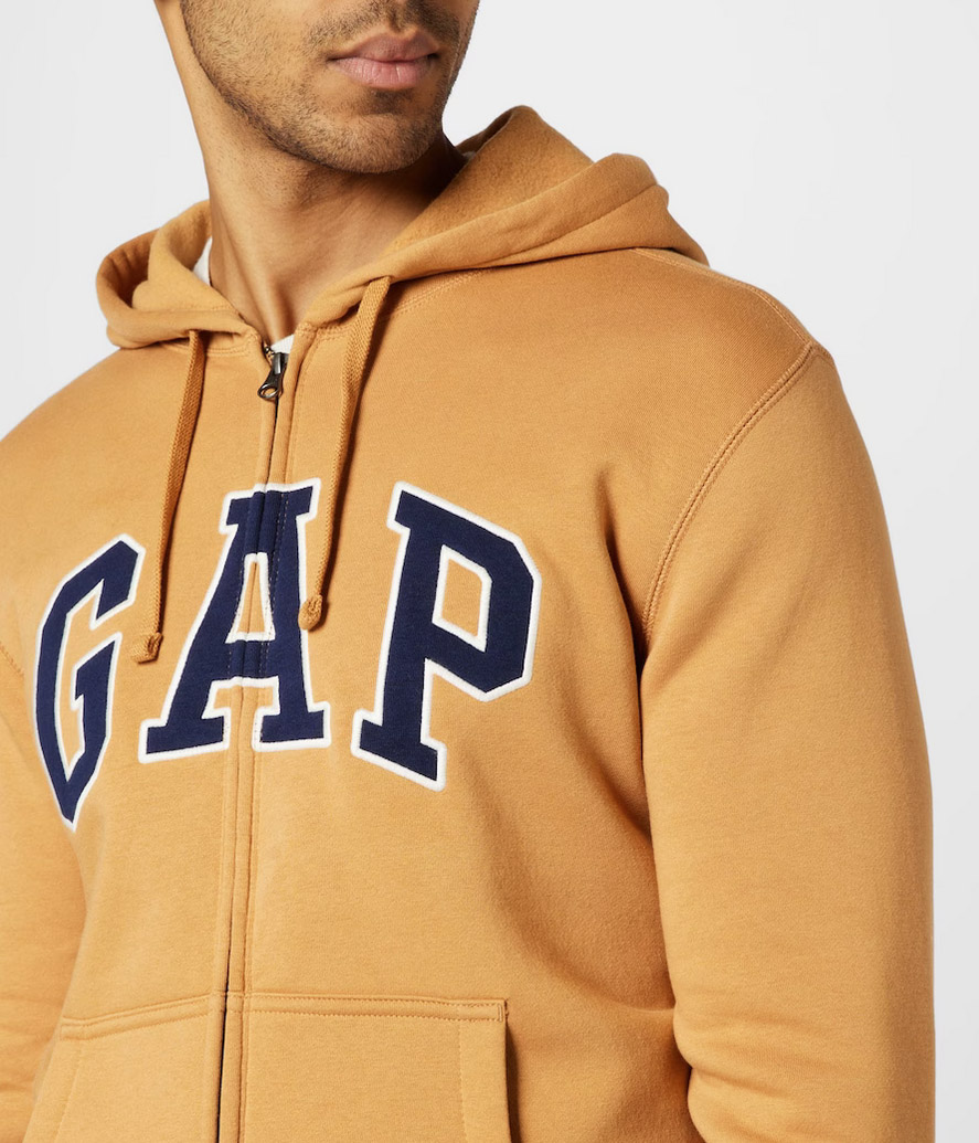 Gap ανδρική ζακέτα,φούτερ. Soft, comfy fleece. Long sleeves with ribbed cuffs, hem. Hood with drawcord ties. Zip front. Embroidered arch logo applique at front.