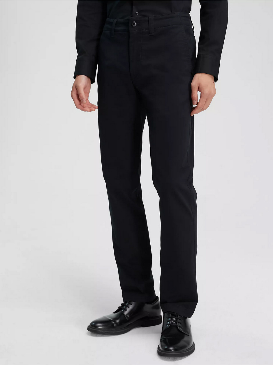 Styled in a slim fit, these chino pants are a versatile piece suited for both elevated and casual outfits. Crafted from a cotton stretch blend for breathable comfort and effortless wear. Made with a medium rise waist and slip pockets at both sides.