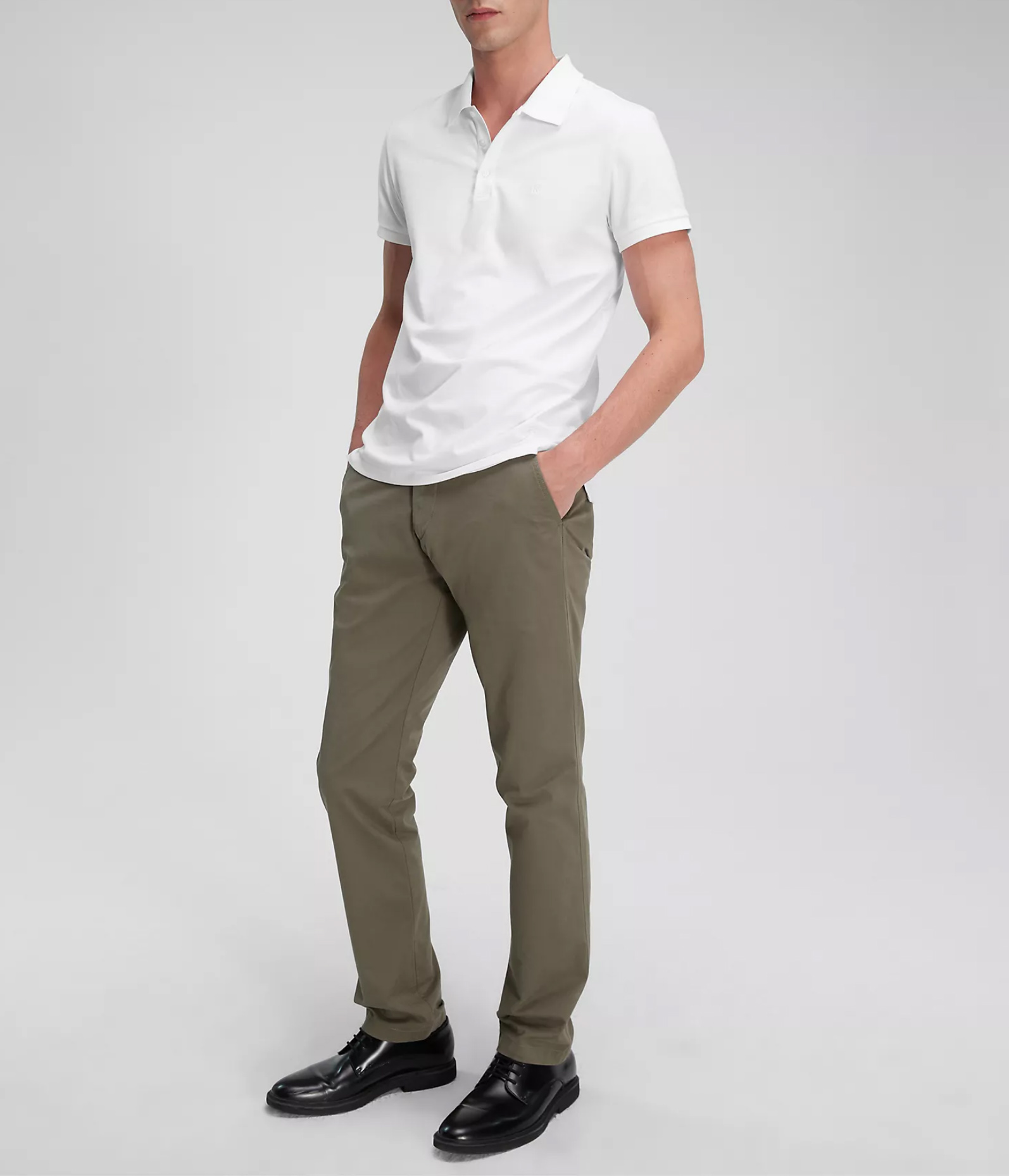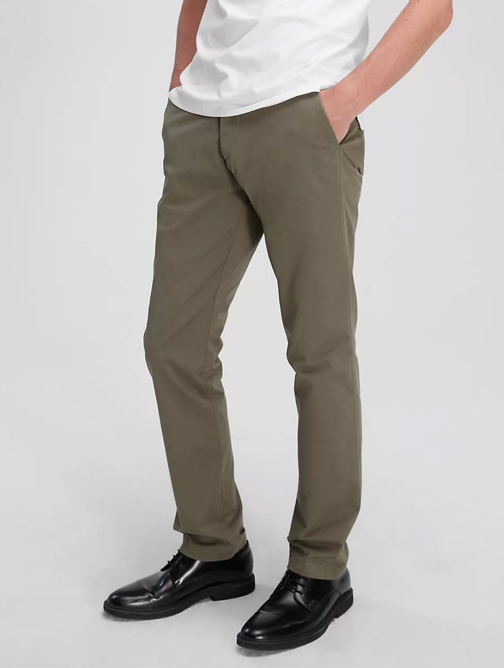 Styled in a slim fit, these chino pants are a versatile piece suited for both elevated and casual outfits. Crafted from a cotton stretch blend for breathable comfort and effortless wear. Made with a medium rise waist and slip pockets at both sides.