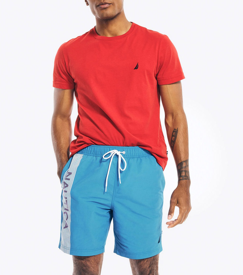 Μαγιό Nautica , Quick Dry πανί που στεγνώνει γρήγορα.Ελαφριά διχτυωτή εσωτερική επένδυση From the Sustainably Crafted collection. 100% recycled polyester. Classic fit. Quick dry fabric dries in minutes for all-day comfort.