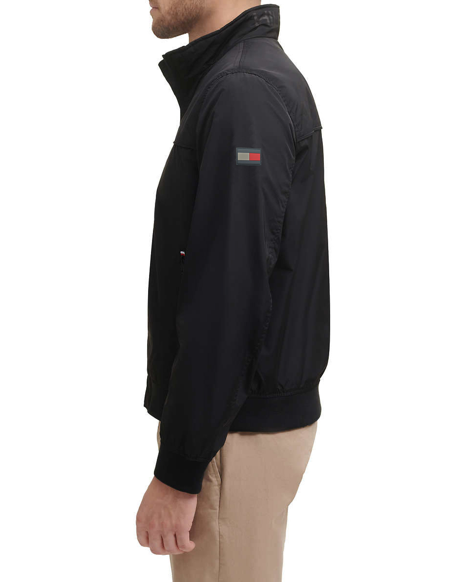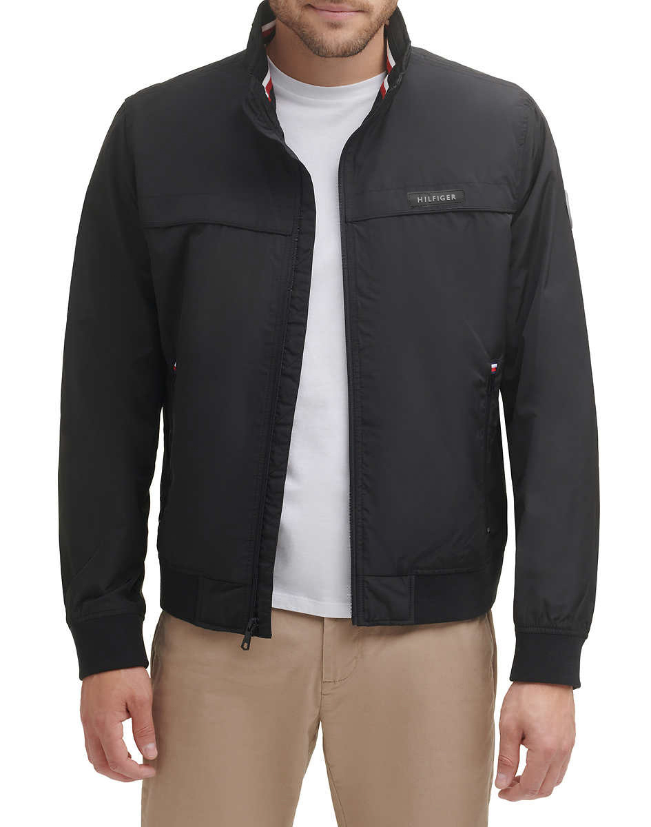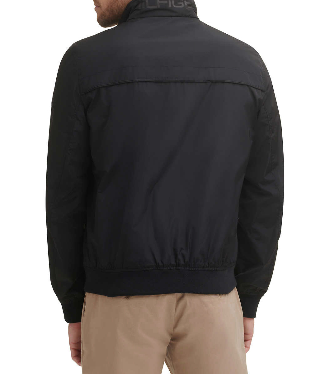 Tommy Hilfiger Bomber Jacket 39 Lightweight Rib knit cuffs and hem Stand collar lined with rib knit Center front zipper Breathable Shell and Lining: 100% Polyester Rib: 98% Polyester | 2% Spandex