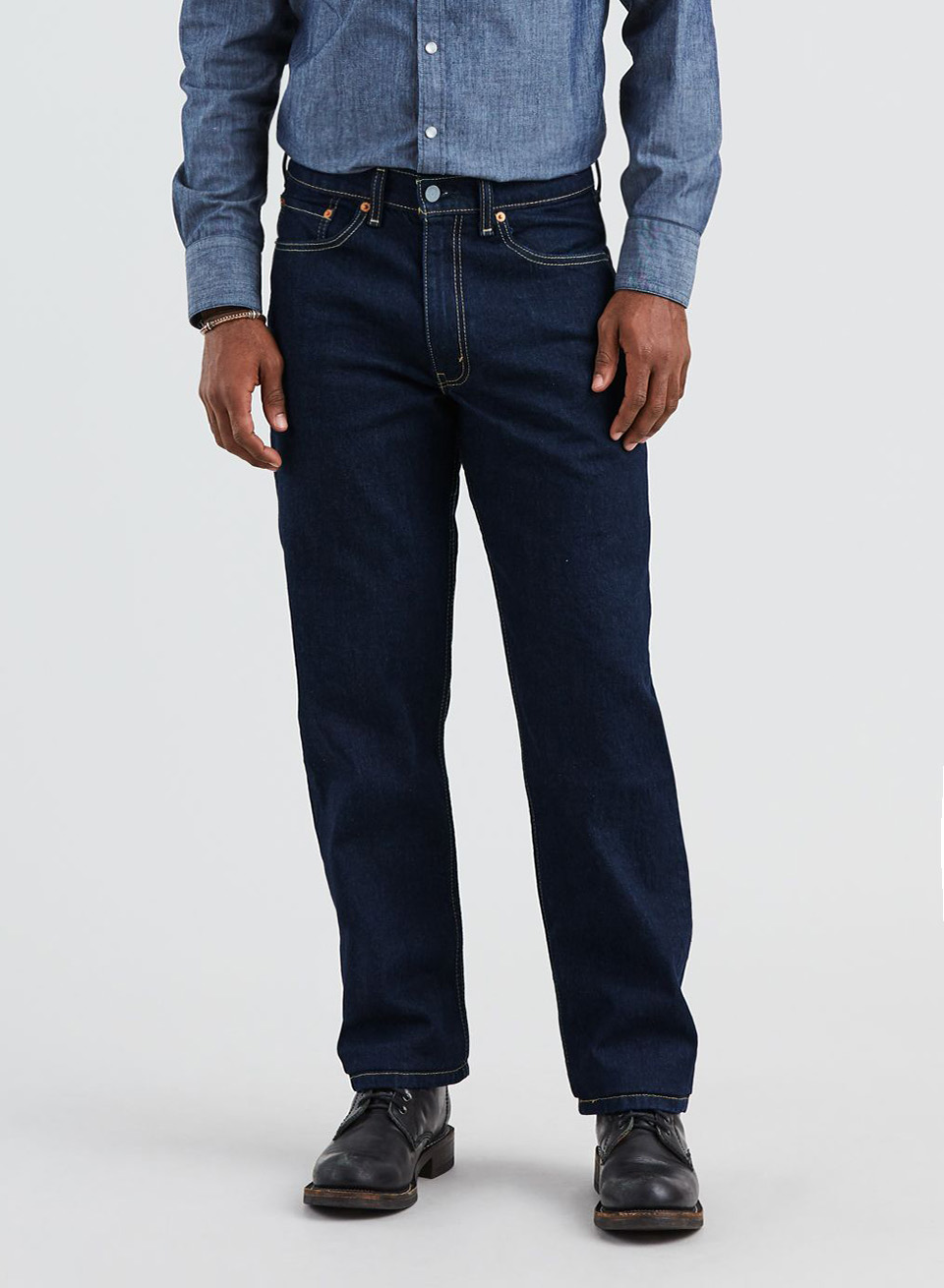 Relaxed Through The Seat And Thigh Sits At Your Waist Straight Leg 100% cotton Denim Non-stretch Zip fly 5-pocket styling