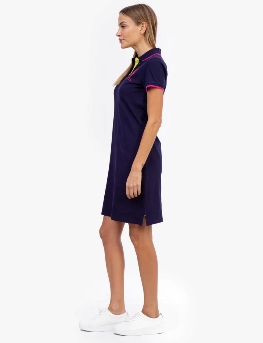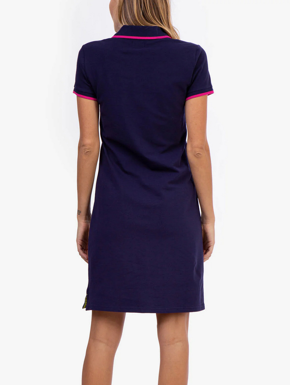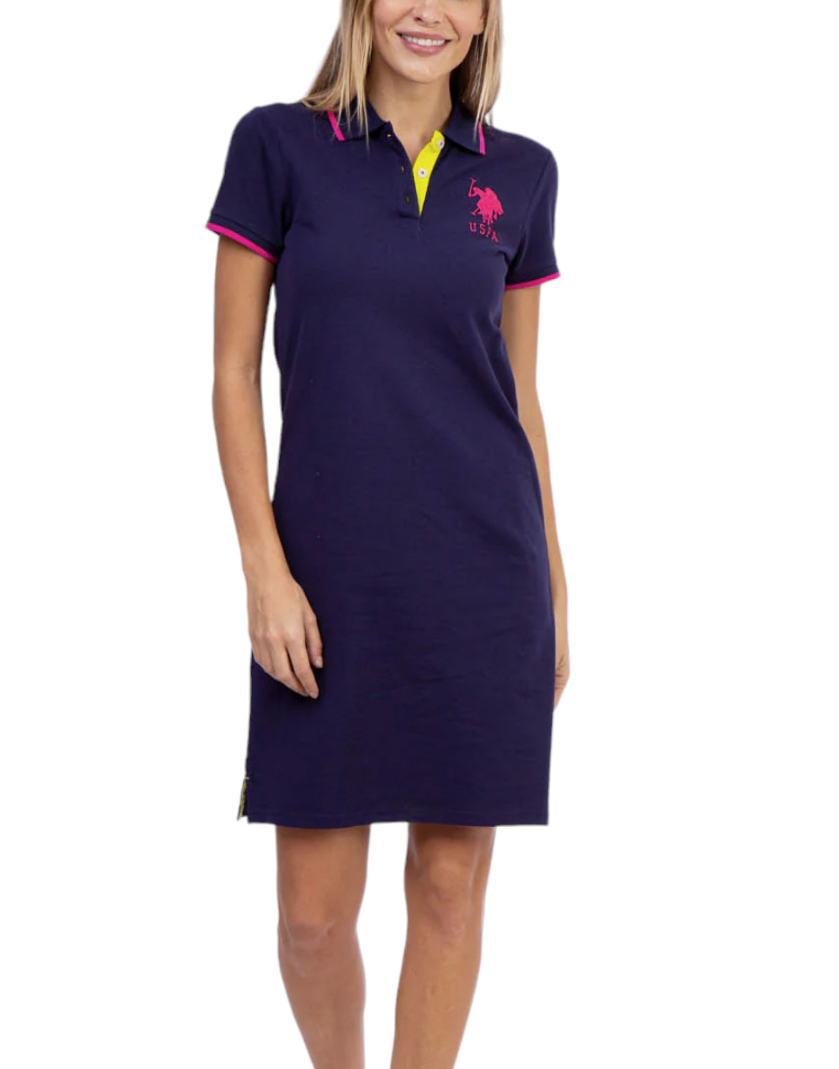 Φόρεμα Us Polo μπλέ Short sleeves. Decorative button on side of each sleeve. Embroidered logo on upper left front. 95% Cotton, 5% Spandex. Machine Wash.