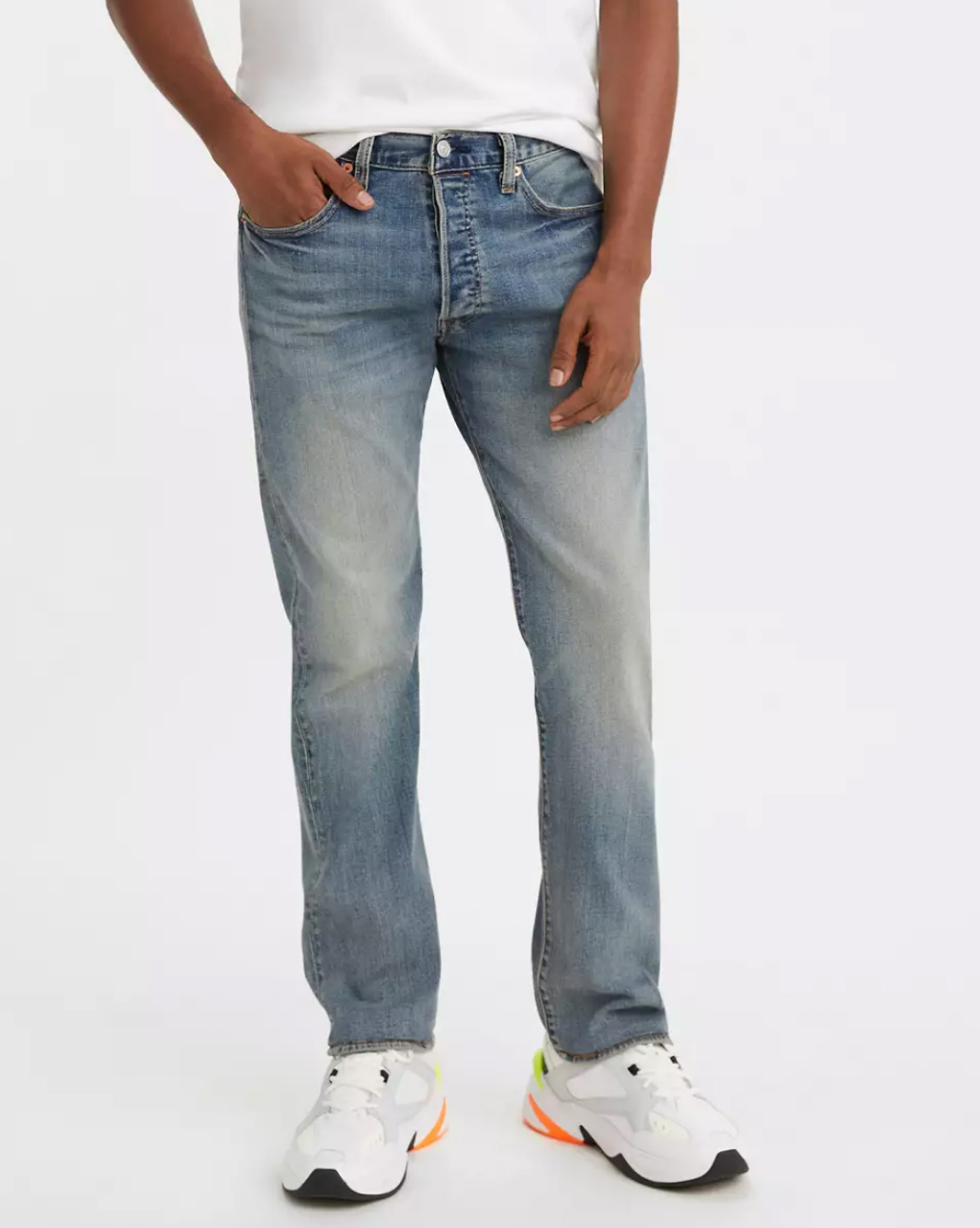 Jean Levi's 501 Original Ελαστικό πανί Regular Through The Thigh Sits at your waist Straight Leg 94% cotton~5% polyester (Generic)~1% elastane (LYCRA®) Denim Stretch Button fly