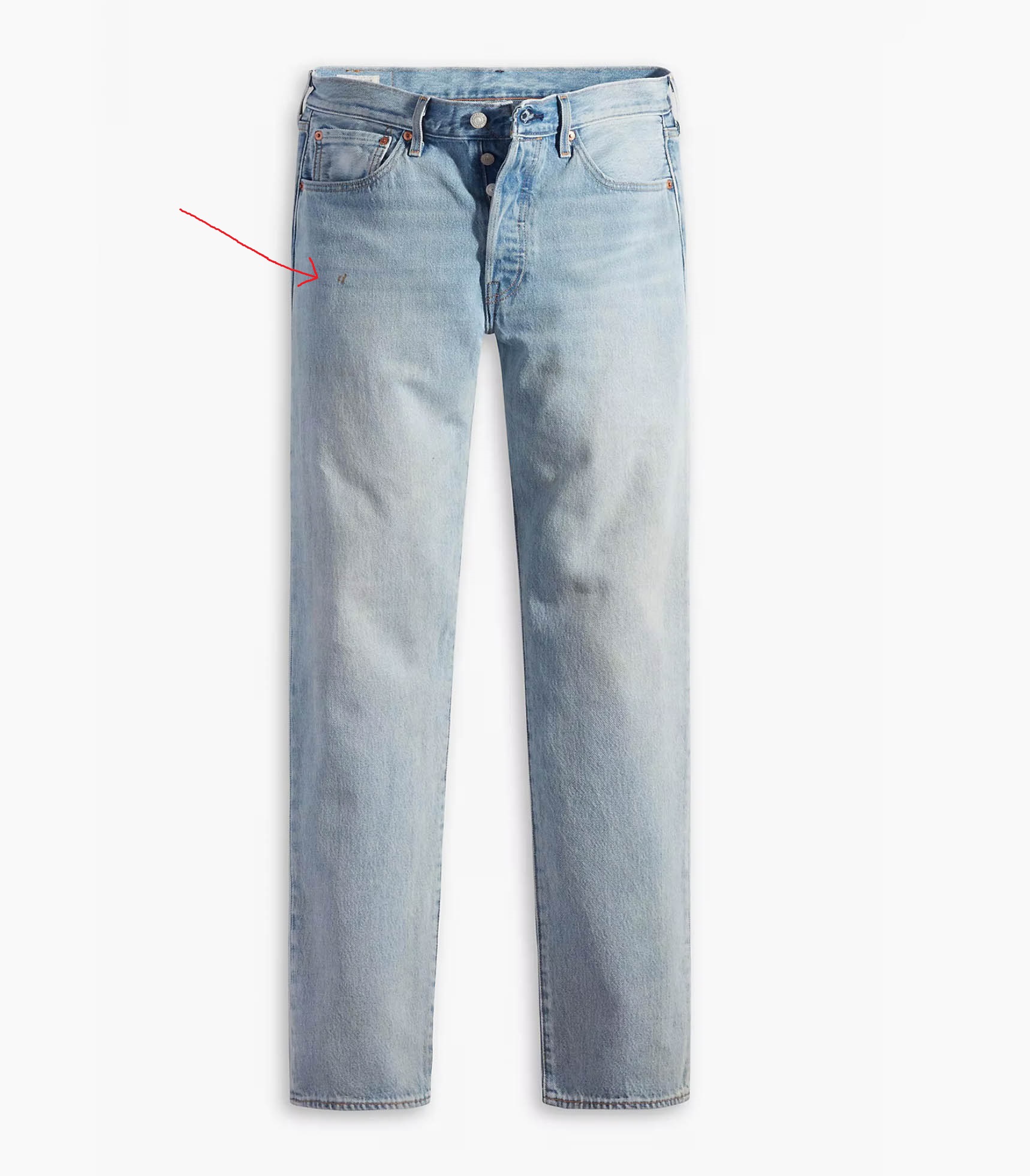 Jean Levi's 501 Original - Vintage λεπτομέρεια βαφή στην δεξιά τσέπη Κανονική γραμμή - Straight 100% Cotton Non-Stretch Button fly