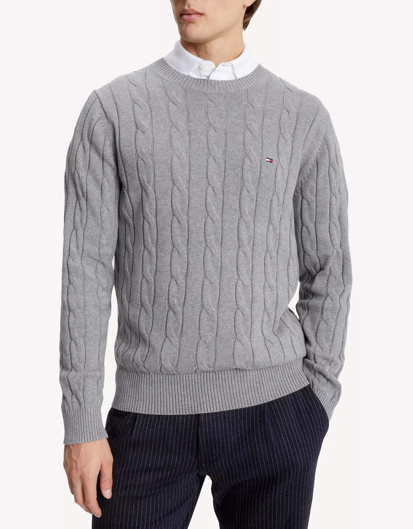 Πουλόβερ Tommy Hilfiger Flag Logo Cable Knit Sweater Regular Fit. 100% Pure organic cotton