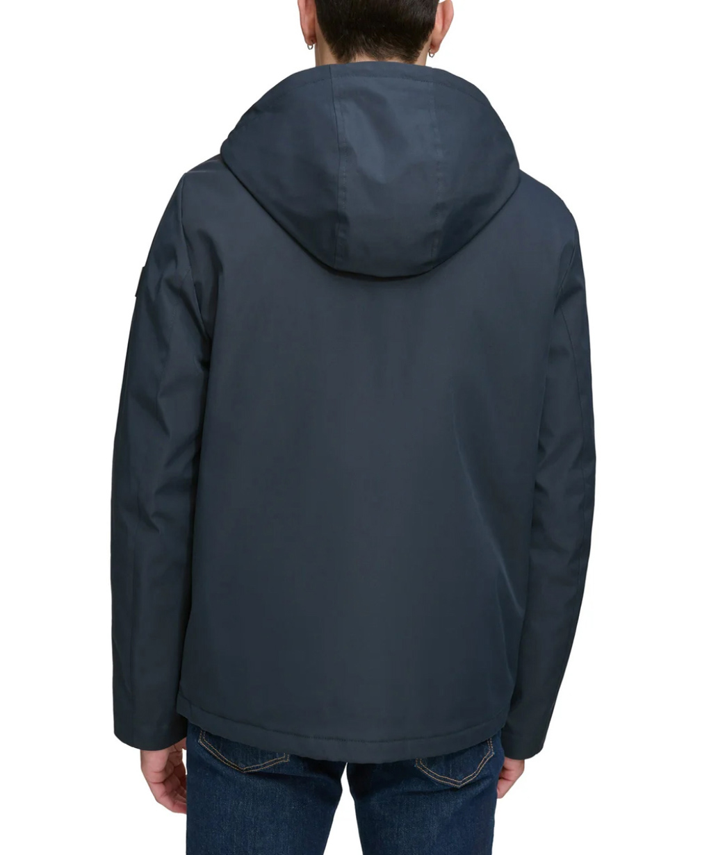 Bungee at hood and hem to cinch