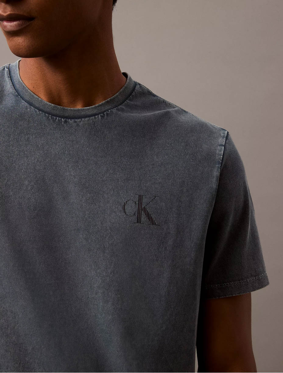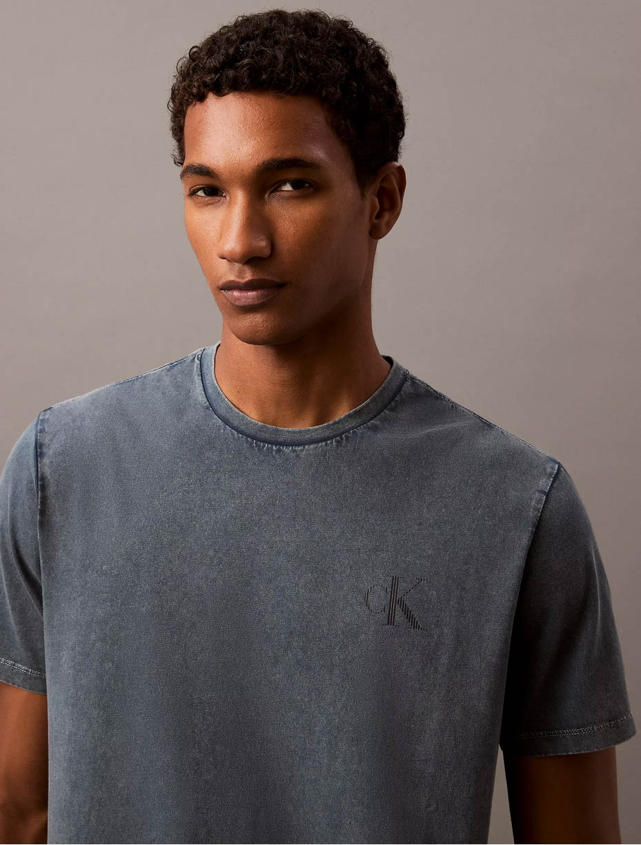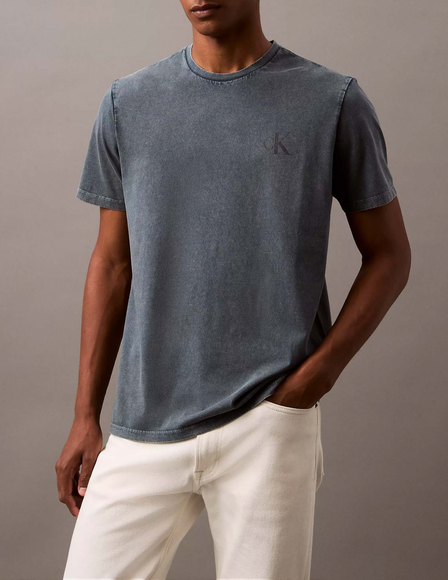 Acid Wash Monogram Logo Classic T-Shirt Printed monogram logo graphic at the upper chest Classic silhouette Short sleeves and crewneck Machine wash 100% cotton