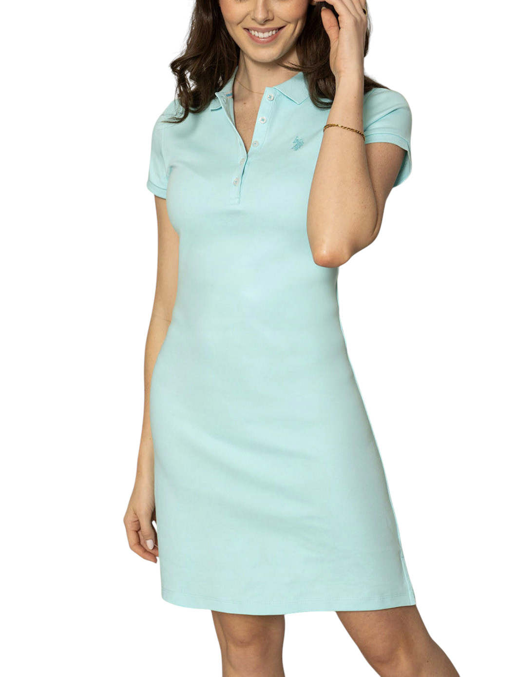 Φόρεμα Us Polo - Slim Fit Ελαστικό Ύφασμα Short sleeves. Decorative button on side of each sleeve. Embroidered logo on upper left front. 95% Cotton, 5% Spandex. Machine Wash