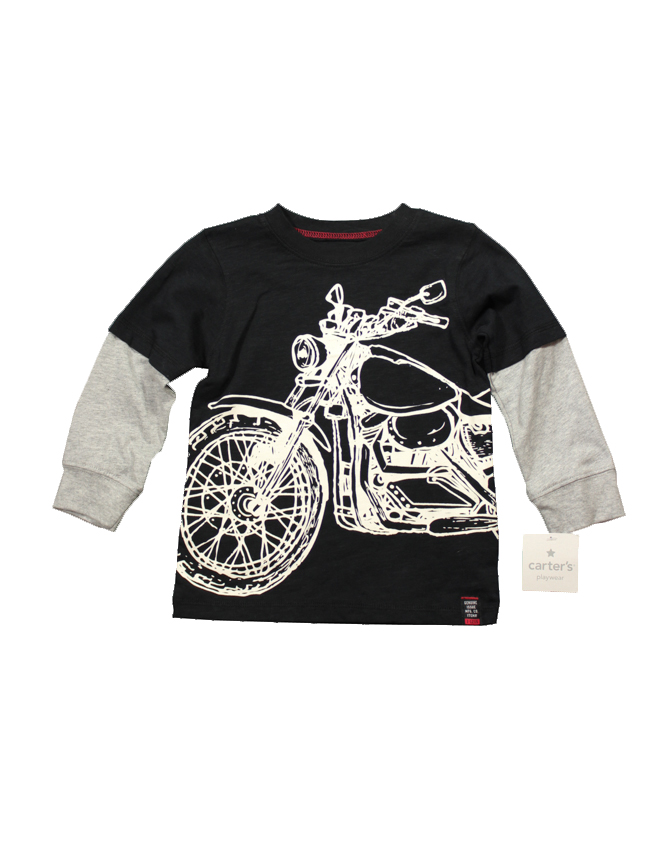 Carter's λεπτή μπλούζα σε μαύρο χρώμα με λευκό print και γκρί μανίκια.
