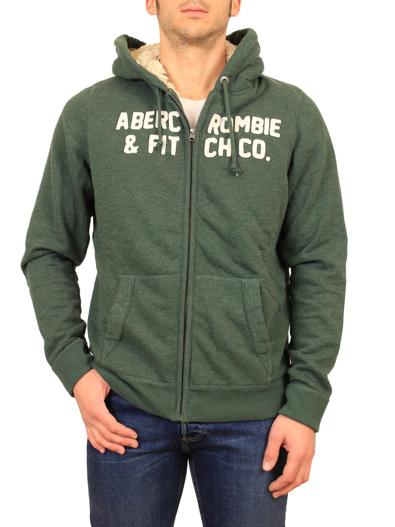 Abercrombie & Fitch ανδρική μπλούζα με γούνα και κεντητό λογότυπο.