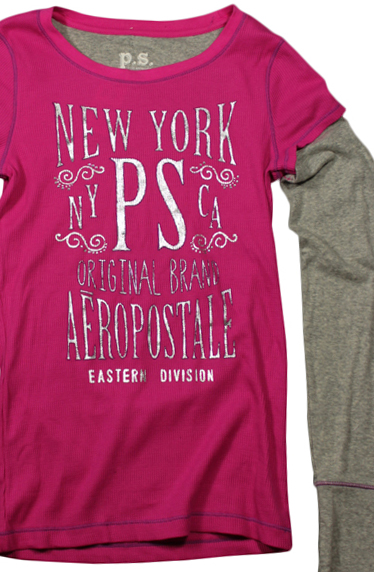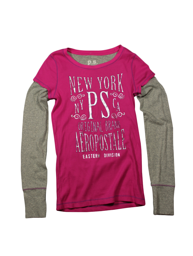 Ρόζ μπλούζα με γκρί μανίκια και το λογότυπο της Aeropostale σε στάμπα.