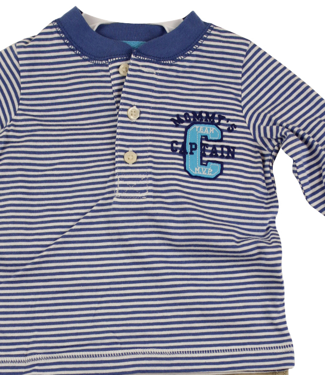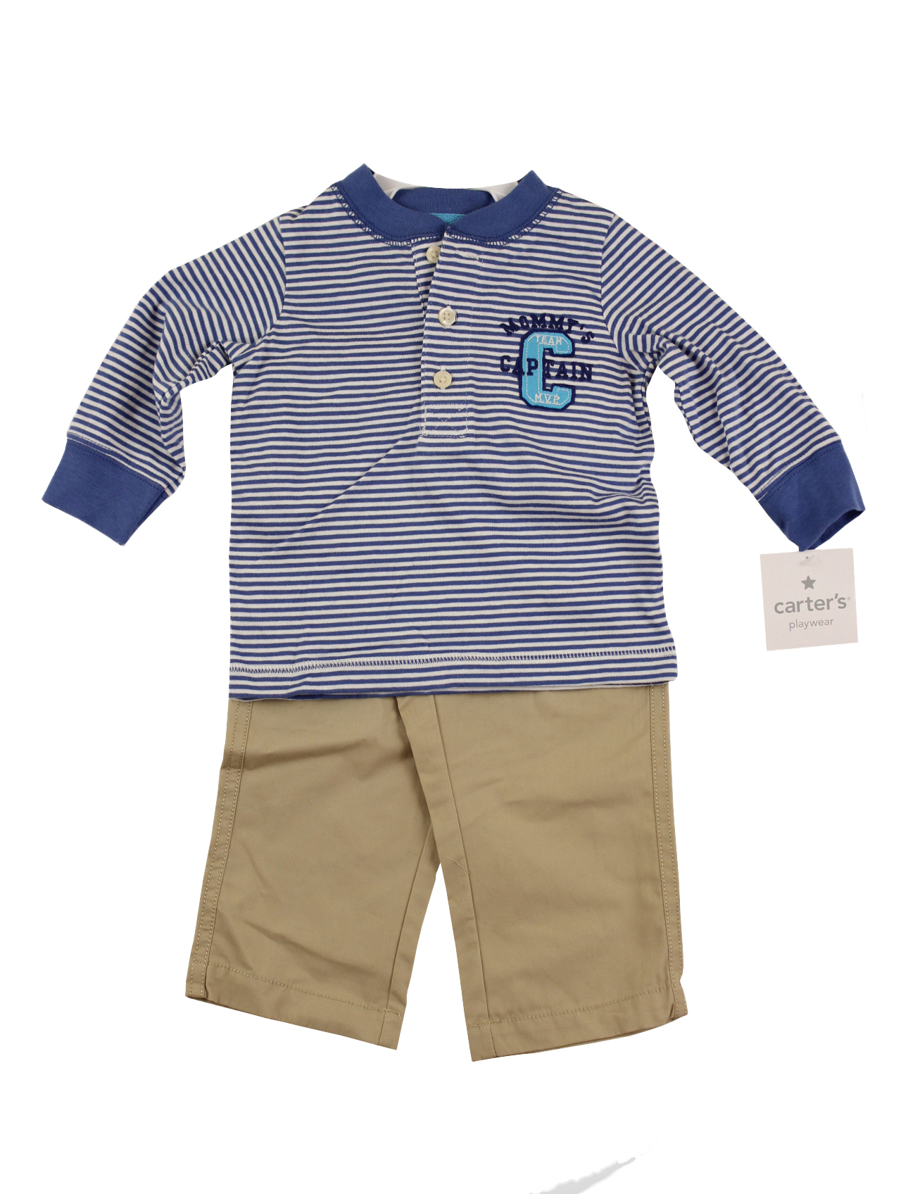 Ριγέ μπλούζα με μπέζ παντελόνι στο παιδικό σετ για αγοράκι της Carter's.