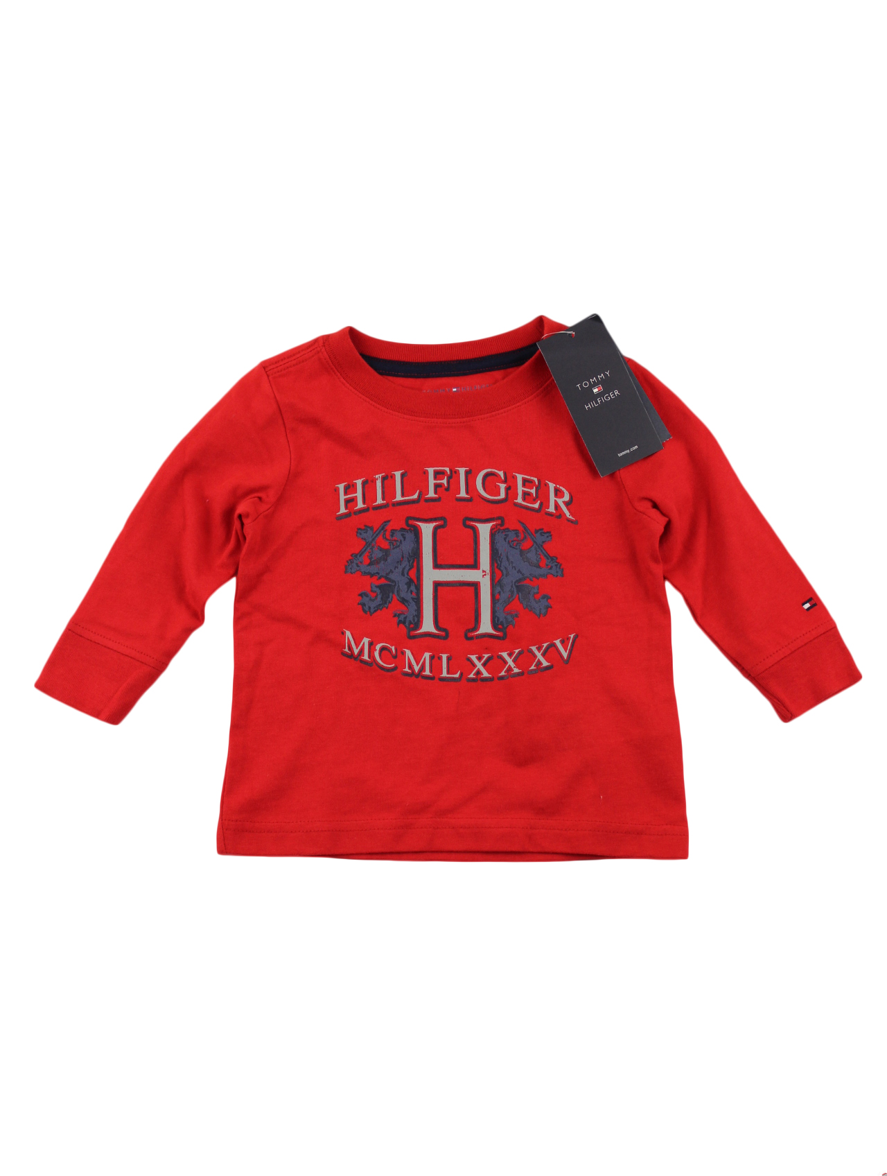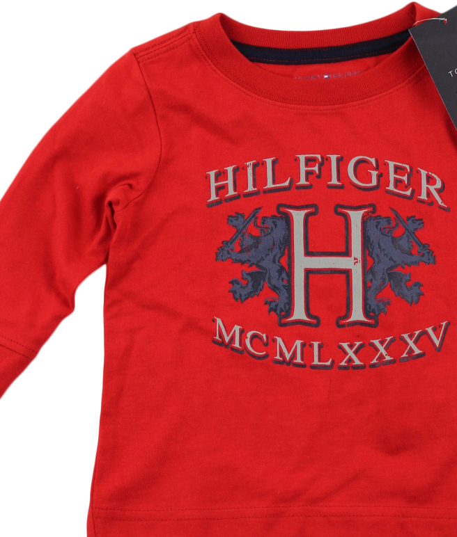 Κόκκινη λεπτή μπλούζα με το λογότυπο της Tommy Hilfiger σε στάμπα και σε κέντημα στο μανίκι.