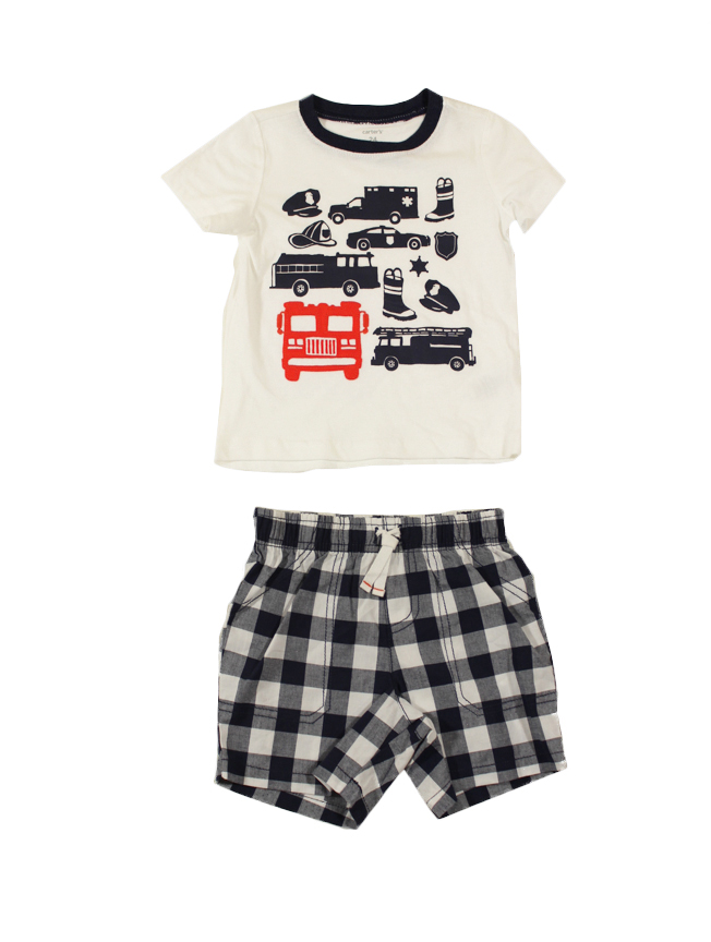 Παιδικό σετ απο την Carter's.T-shirt με διακοσμητικό σχέδιο και καρό βερμούδα.
