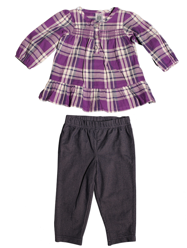 Kολάν με καρό μπλούζα σε μοβ και λευκό χρώμα στο σετ της Carter's.