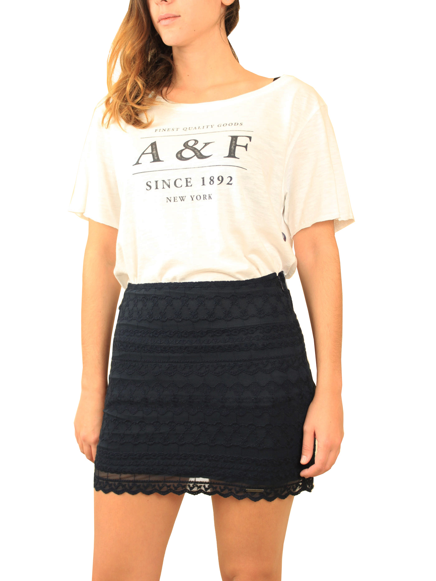 Φούστα Abercrombie & Fitch σε μπλέ σκούρο χρώμα με διαφάνεια στο τελείωμα.