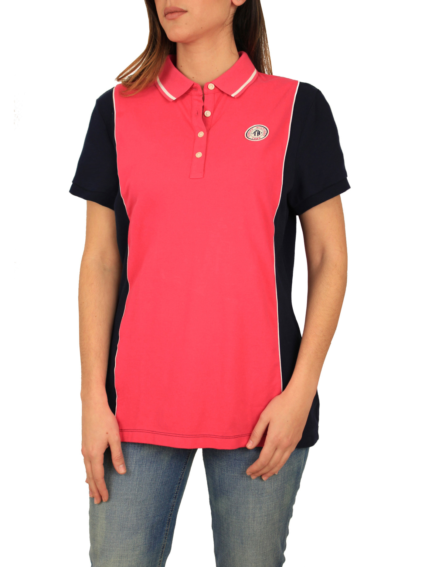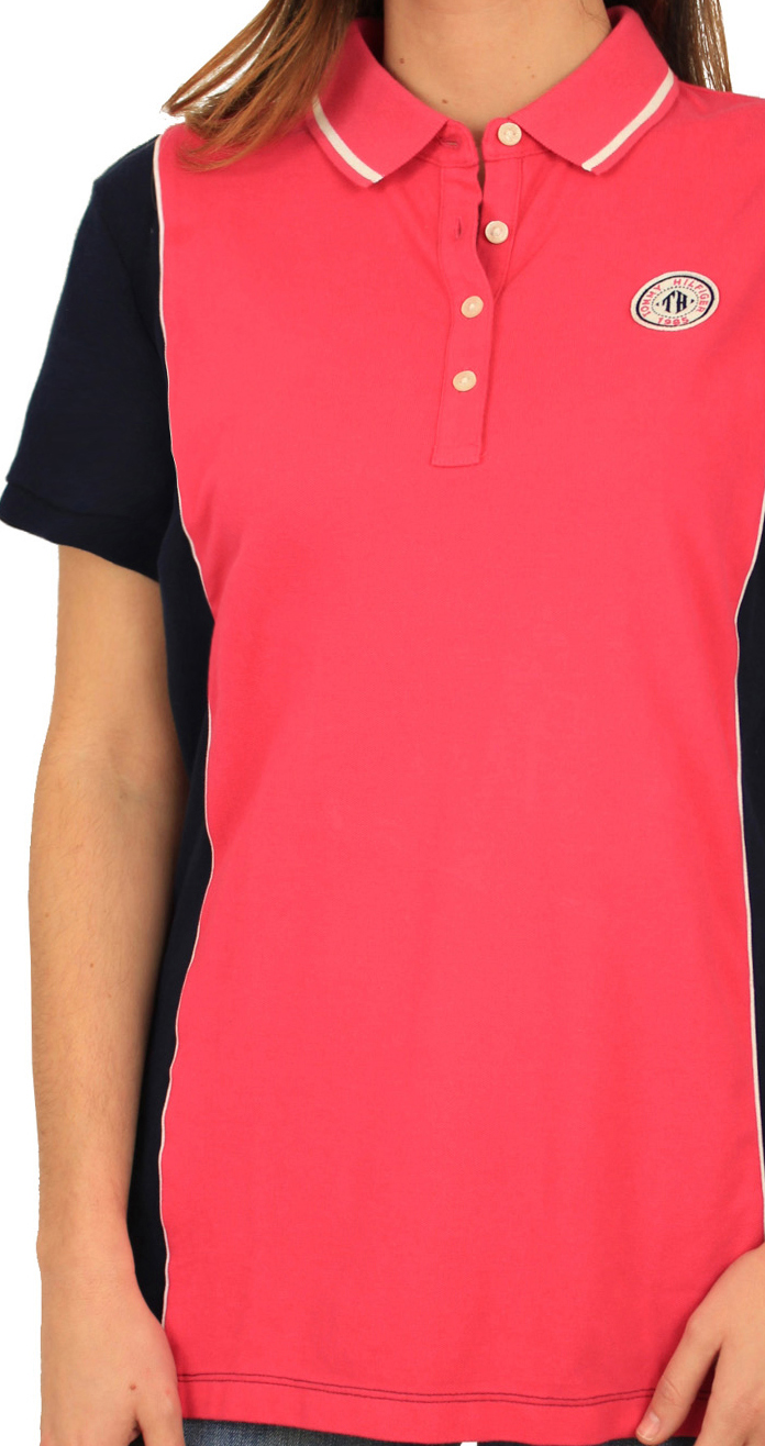 Polo T-shirt Tommy Hilfiger σε ρόζ και μπλέ σκούρο χρώμα.Κεντητό λογότυπο.