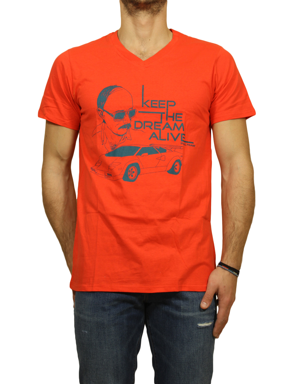 Πορτοκαλί Τ-shirt με μικρό V και μοντέρνο σχέδιο απο τη Paul Frank.
