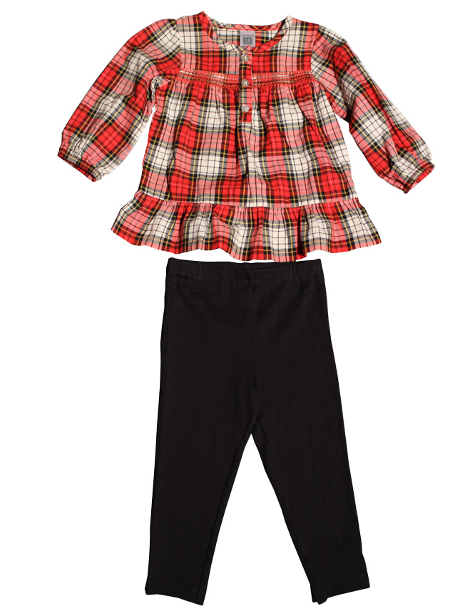 Κόκκινη καρό μπλούζα με μαύρο κολάν στο παιδικό σετ της Carter's.