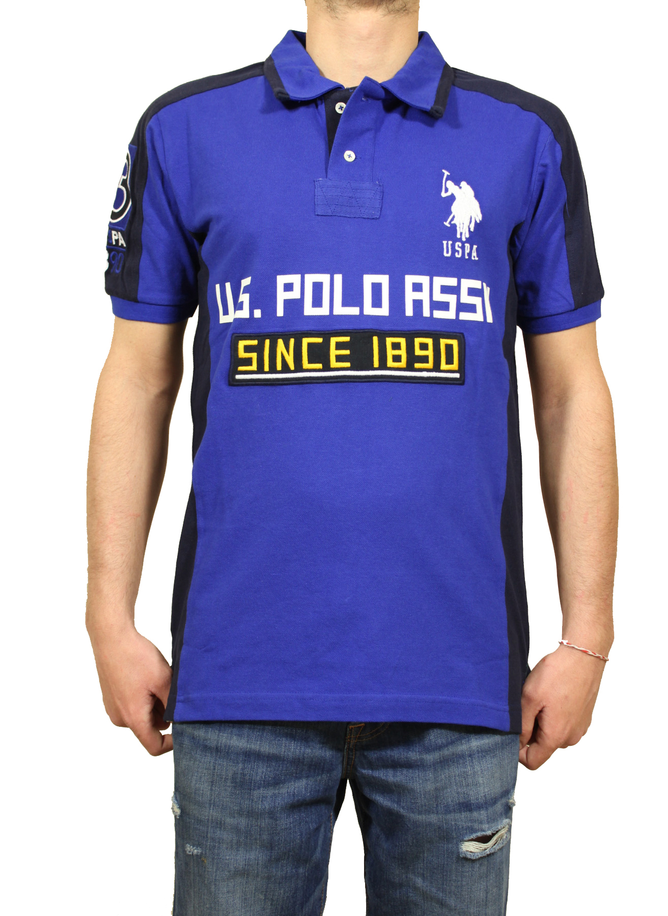 US POLO ASSN ανδρικό Τ-shirt με γιακά και έντονες χρωματικές αντιθέσεις σε μπλέ και μαύρο χρώμα.Κεντητά λογότυπα της εταιρείας στο μανίκι.