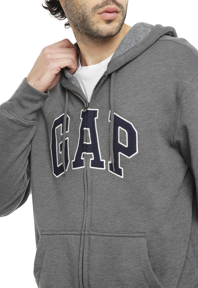 Gap ανδρική ζακέτα Soft, comfy fleece. Long sleeves with ribbed cuffs, hem. Hood with drawcord ties. Zip front. Embroidered arch logo applique at front.